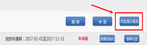 2、完成《中华人民共和国企业所得税年度纳税申报表》(A类,2017年版)的填写后,您可以点击“风险提示服务”按钮。