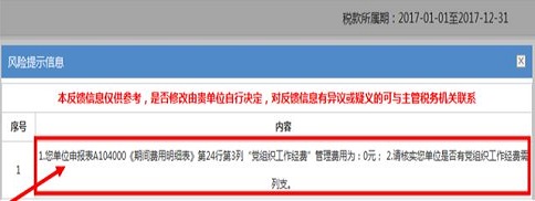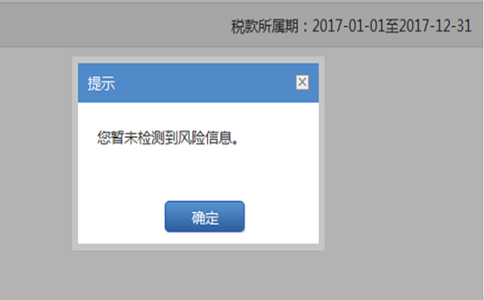 5、 点击*三步提示框中的“确定”按钮后如没有出现申报强制校验信息或忽略提示校验,系统即刻对您提交的申报表数据和相关信息进行风险扫描,您在较短的时间内(通常不超过30秒)即可接收到风险提示信息。
