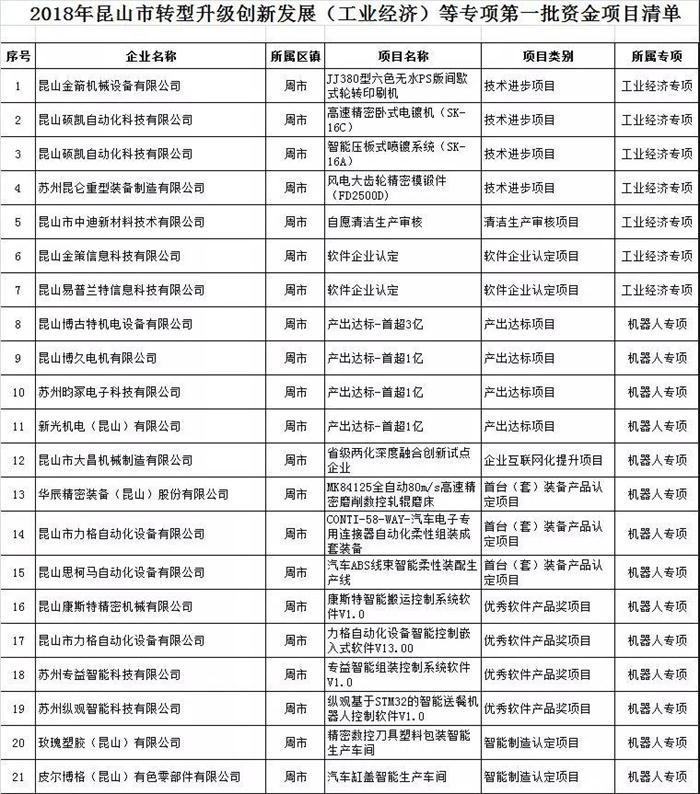 2018年昆山市转型升级创新发展(工业经济)等专项*一批拟立项目公示