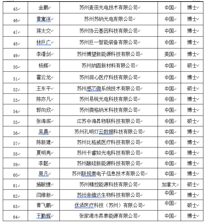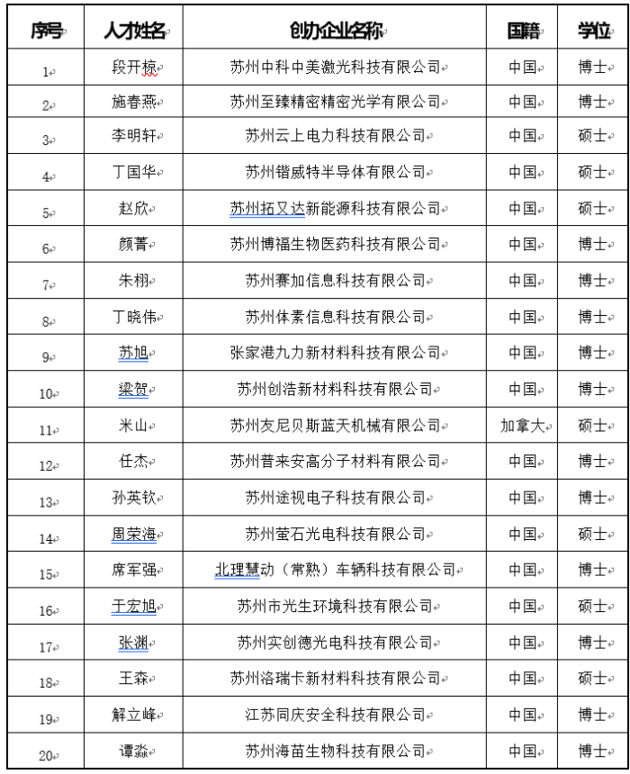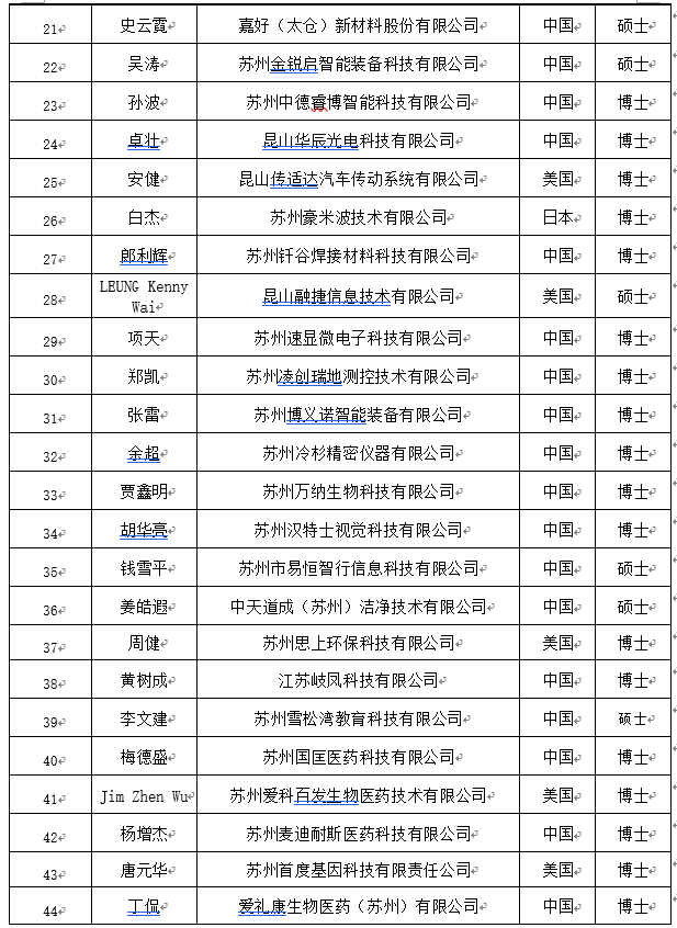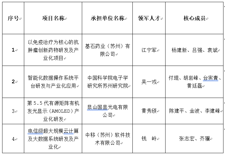 2017年*一批姑苏创新创业领军人才计划创业领军人才拟立项候选项目