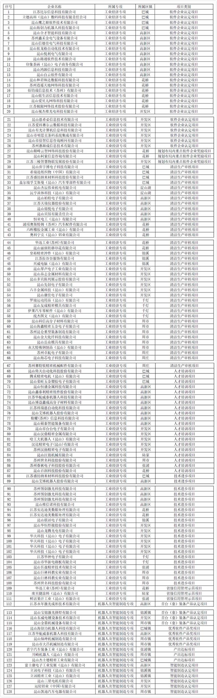 2017年昆山市转型升级创新发展(工业经济)专项、机器人及智能制造产业发展专项*一批拟立项目名单