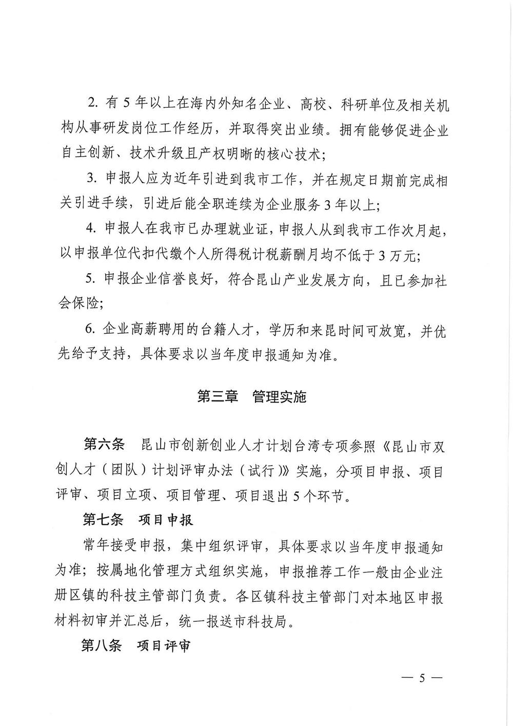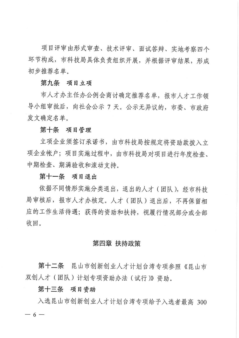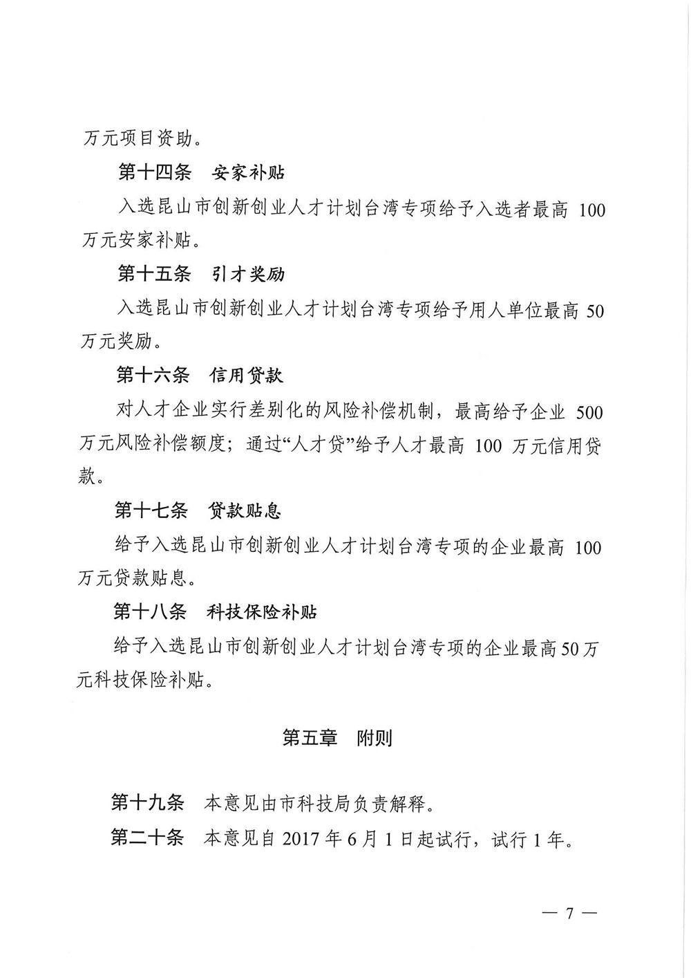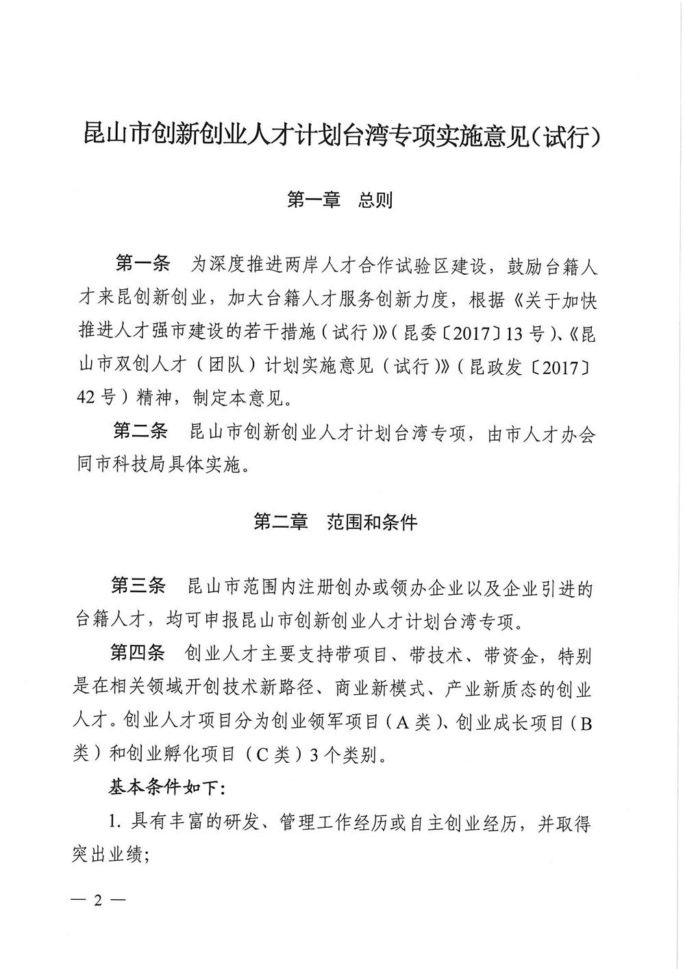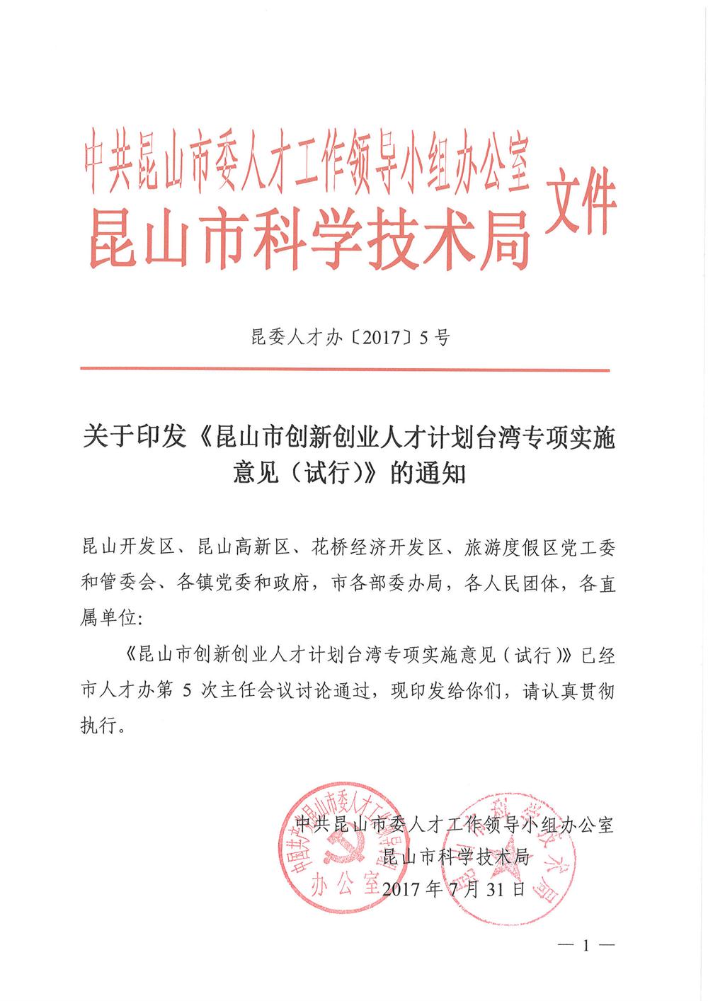 昆山市创新创业人才计划台湾专项实施意见(试行)