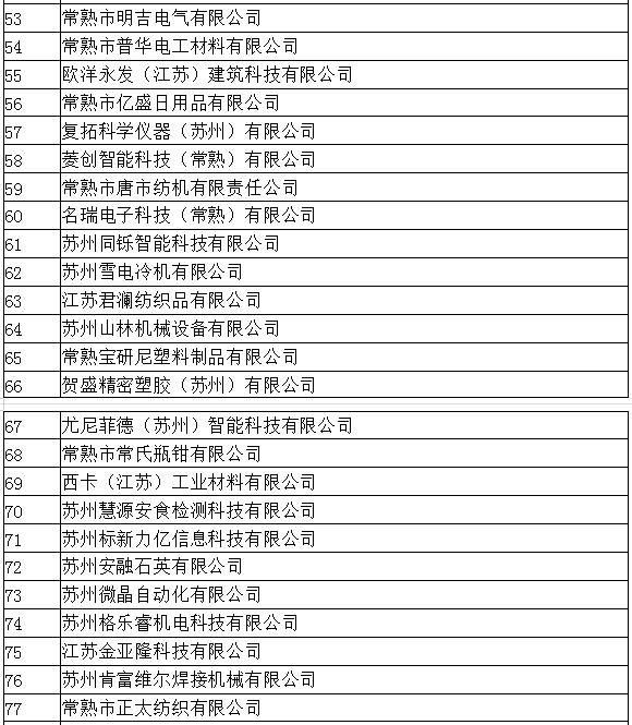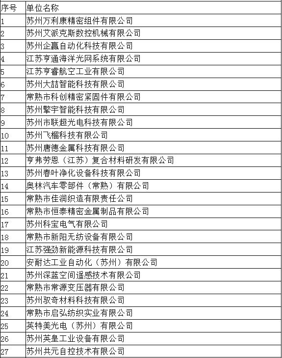为推进全市中小企业高质量发展,根据苏州市工信局《关于转发省工信厅<关于组织开展2022年度“千企升级”企业入库培育和创新型中小企业评价工作的通知>的通知》要求,经企业自主申报、“千企升级”平台自评打分、信用审查、部门审核、党委会讨论通过等程序,现将2022年常熟市创新型中小企业名单予以公告。