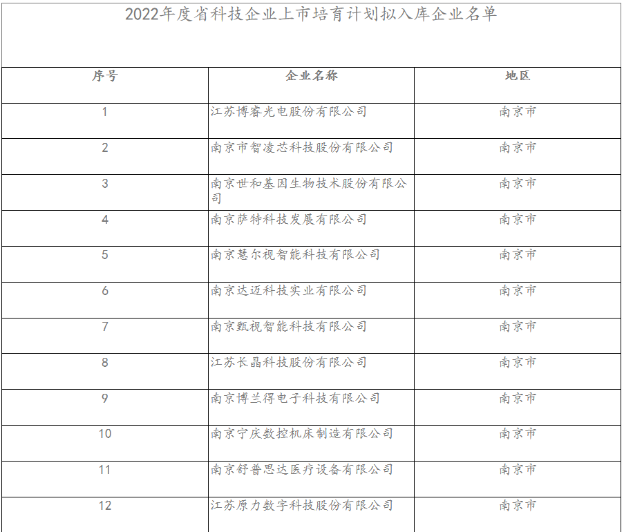 关于2022年省科技企业上市培育计划拟入库企业公示【智为铭略转发】