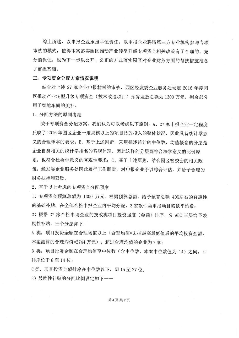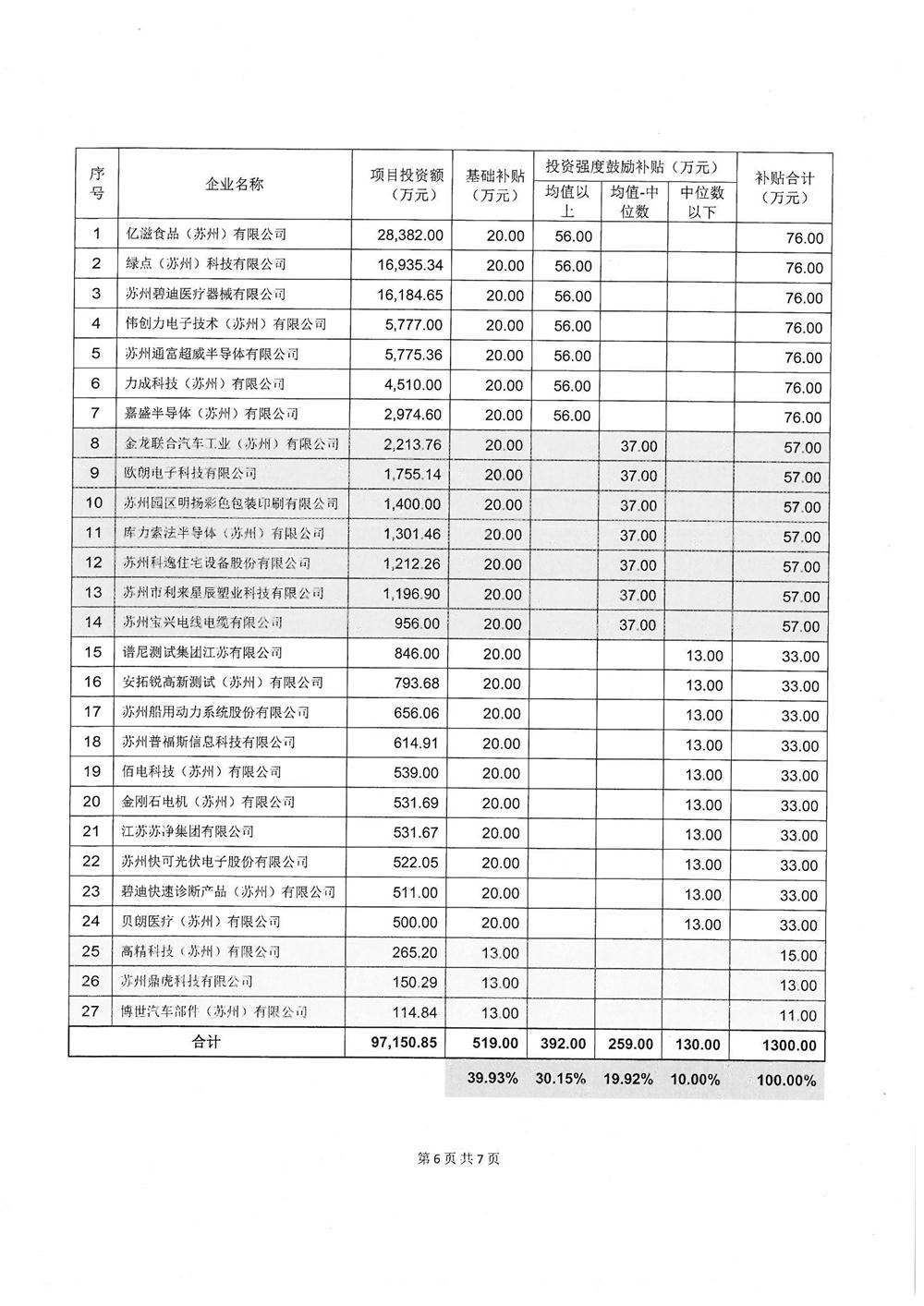 为了进一步调整和优化经济结构、促进产业转型升级,根据《苏州工业园区关于推动产业转型升级的若干意见》、《苏州工业园区关于推动产业转型升级专项资金管理办法》(苏园管[2014]91号)及《园区管委会关于发展智能制造及相关产业的实施意见》(苏园管[2016]34号)的文件精神, 经单位申报、*三方评审、管委会审批等程序,决定对亿滋食品(苏州)有限公司、绿点(苏州)科技有限公司、苏州碧迪医疗器械有限公司等企业给予2016年度自动化专项补贴,合计1300万元。现予以公示。公示期为五个工作日,如有异议,请在公示期间以书面、电话等形式向园区经发委反映。