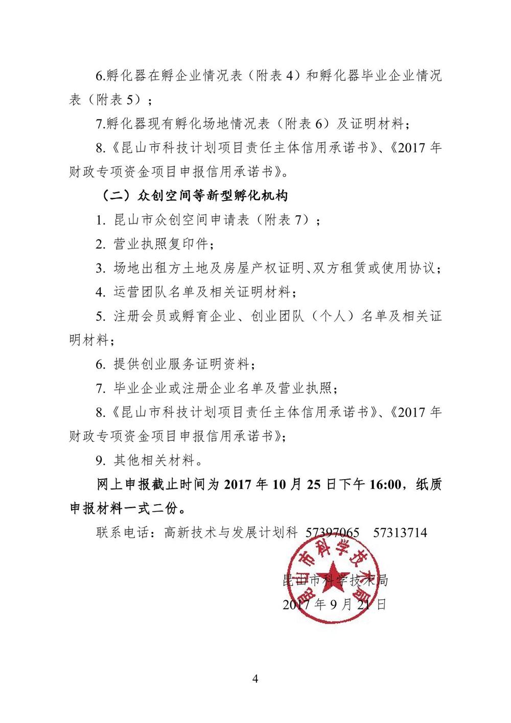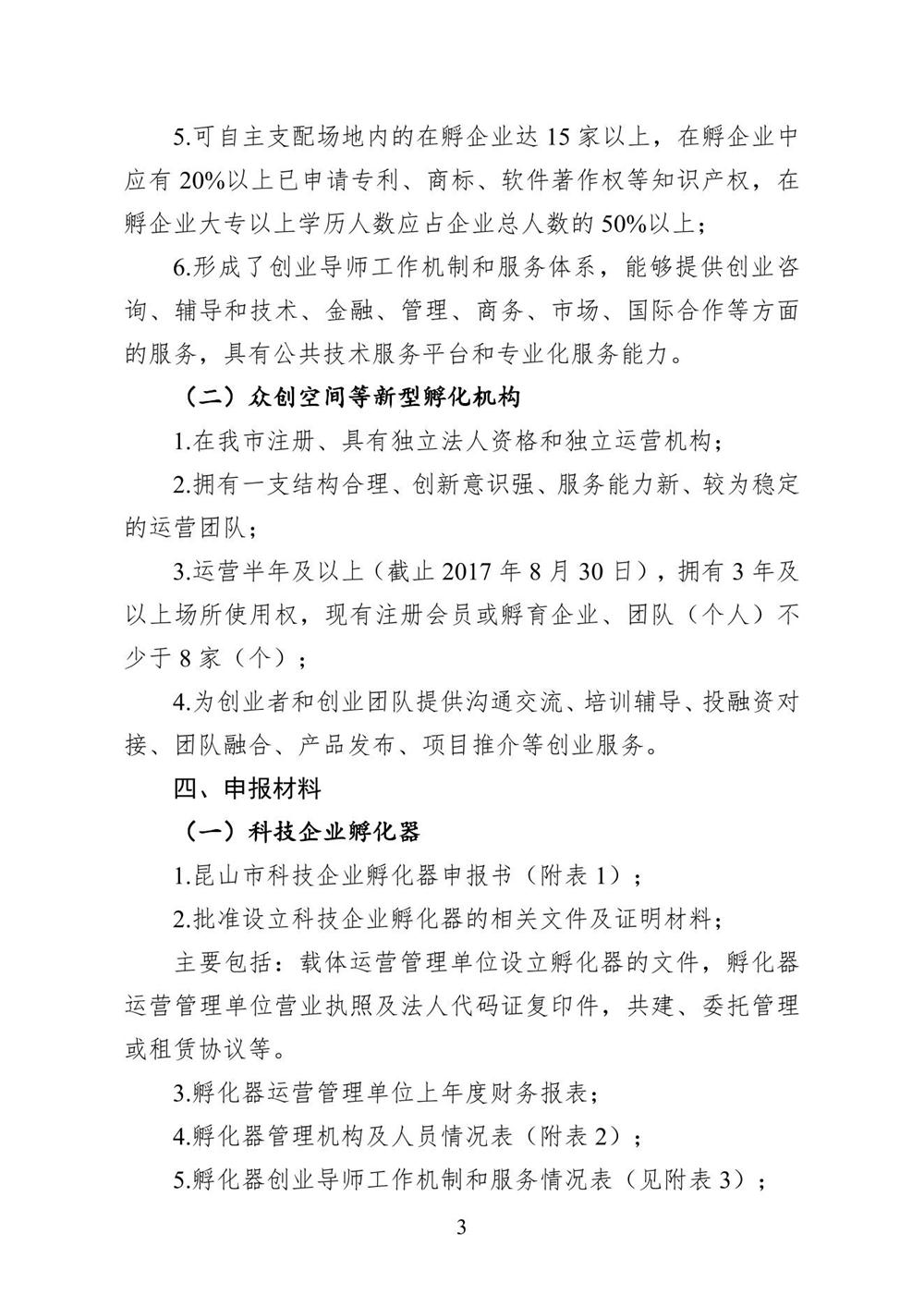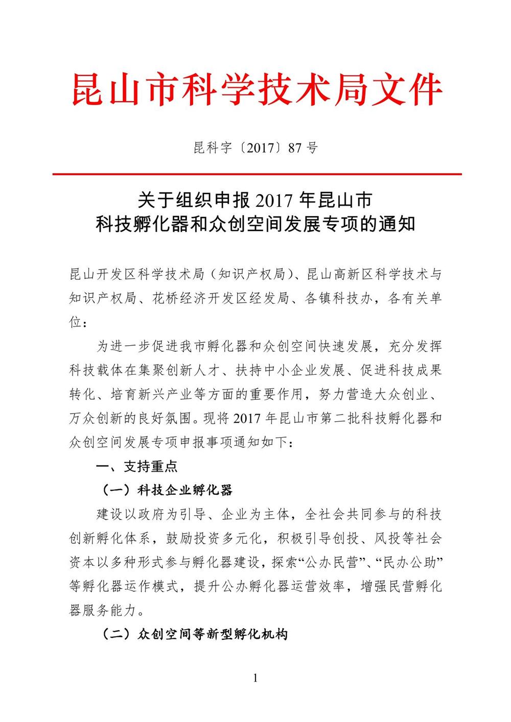 2017年度昆山市科技孵化器与众创空间发展专项的通知