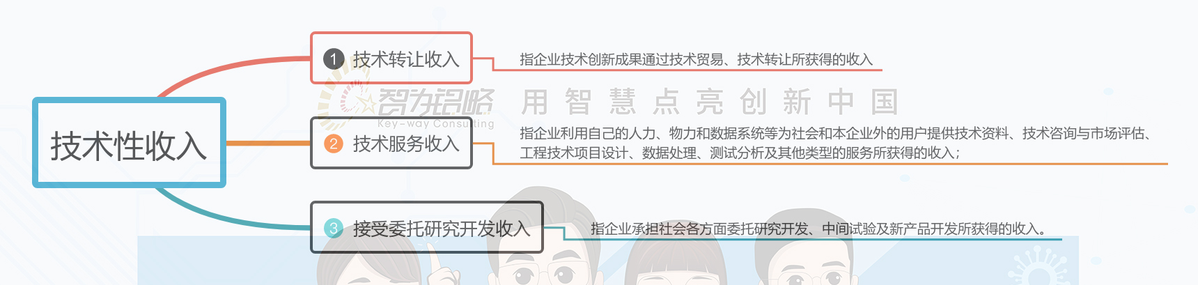 这里大家需注意高新技术产品(服务)收入=产品收入+技术性收入的总和。产品收入大家很容易理解,技术性收入则包括以下三个部分: