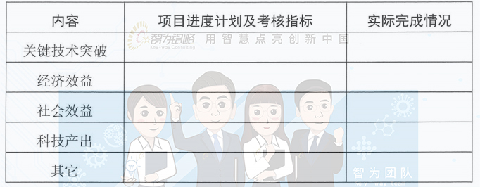 其二层面呢,如果本身项目各方面指标进展基本完成甚至超出合同指标,那这里也不建议完全空着,可以放置一些未来发展计划中希望得到政府支持的信息。
